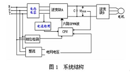 系統(tǒng)結(jié)構(gòu)如下圖1所示,由LC濾波、逆變塊A、母線電容C、逆變塊B和逆變塊A的控制系統(tǒng)組成。