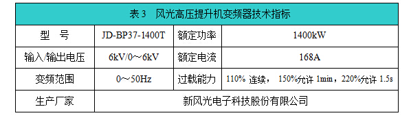 風光高壓提升機變頻器具體參數如表3所示。