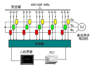 采用功率單元串聯,不存在器件均壓的問題。每個功率單元承受全部輸出電流,但僅承受1/5的輸出相電壓和1/15的輸出功率。輸入功率因數可達到0.95以上。這種主電路拓撲結構雖然使器件數量增加,但是由于IGBT驅動功率很低,且不必采用均壓電路、吸收電路和輸出濾波器,可使變頻器的效率高達96%以上。