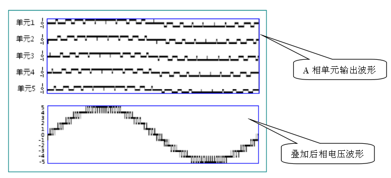 6KV每相5個單元級聯多電平變頻器電壓疊加原理(以其中一相如A相為例)如下圖所示: