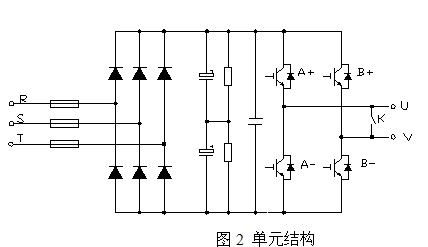 每個(gè)功率單元結(jié)構(gòu)上完全一致,可以互換,其電路結(jié)構(gòu)見(jiàn)圖3.2,為基本的交-直-交單相逆變電路,整流側(cè)為六支二極管實(shí)現(xiàn)三相全橋整流,通過(guò)對(duì)IGBT逆變橋進(jìn)行正弦PWM控制,每個(gè)個(gè)功率單元完全一樣,可以互換,這不但調(diào)試、維修方便,而且備份也十分經(jīng)濟(jì),假如某一單元發(fā)生故障,該單元的輸出端能自動(dòng)短路而整機(jī)可以暫時(shí)降額工作,直到緩慢停止運(yùn)行。
