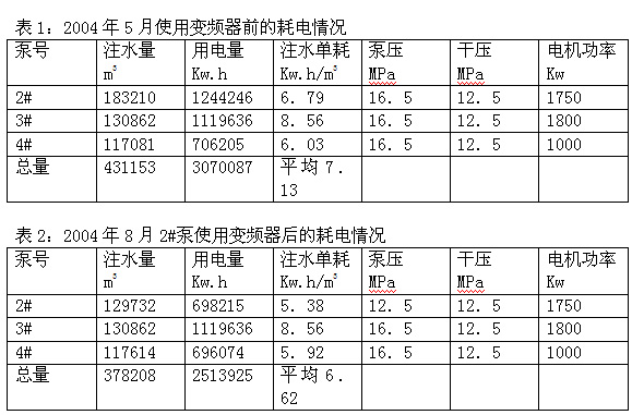 該變頻器于2004年8月在新三聯(lián)2#注水電機(jī)安裝正式運(yùn)行,使用變頻器前后的耗電情況統(tǒng)計(jì)見(jiàn)下表: