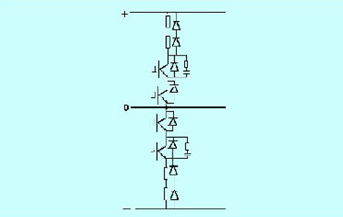 為了適應電壓等級及負載的要求,采用了三電平電路或稱中點箝位電路,如圖1所示。