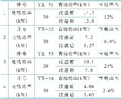 (3)節能顯著。從以上計算分析可看出,采用變頻后,頻率下降,可節約大量的能量,如采油一廠的YX-36、YX-16井,節電率也可達到20%左右,效果明顯。