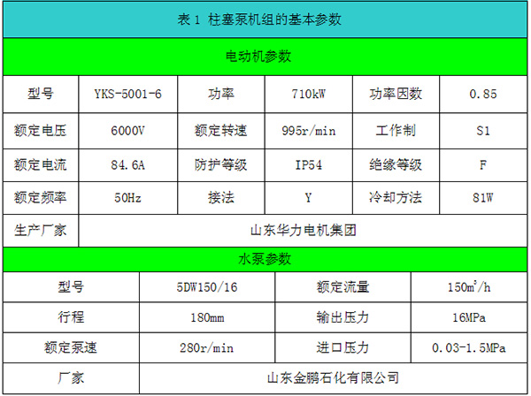 3 柱塞泵工藝工況及主電機參數(shù)介紹