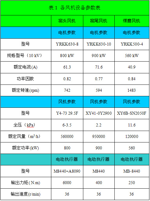 莒縣中聯水泥有限公司是中國建材集團水泥業務平臺--中國聯合水泥集團有限公司旗下的核心企業。公司位于新亞歐大陸橋頭堡、“日出初光先照”的日照市,南靠兗石鐵路,北近膠濟鐵路,東臨日照港,交通十分便利。公司現有一條日產4000t熟料生產線,采用新型干法窯外預分解工藝,技術裝備達到國內先進水平,具有科技含量高、資源消耗低、經濟效益好、環境污染少、管理模式新等特點。水泥生產線上的風機,設計裕量比較大,存在“大馬拉小車”的現象。由于工況、產量的變化,所需的風量也需隨之變化,調整風量通過電動執行器調節進、出口風門的開度來完成,該方法雖然可以調節風量,但電能浪費嚴重,風機運行效率低。