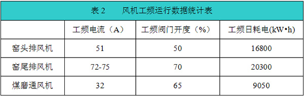 改造前,水泥生產線工頻耗電情況統計數據如表2所示。