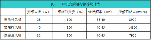 改造后,水泥生產線變頻耗電情況統計數據如表3所示。