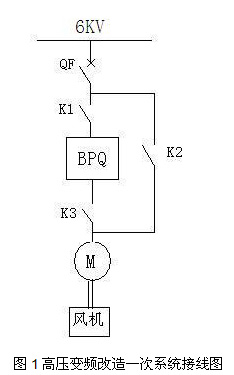 改造前:原系統6kV高壓開關柜至電機,電機與風機直接連接,通過風門擋板的開度來調節流量。