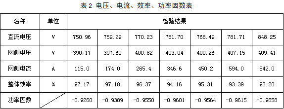 我公司做的大功率可再生能源回饋并網裝置經鐵道部產品質量監督檢驗中心檢驗證明:具有輸出功率大、網側電流波形好、整體效率高等特點。表2是功率因數、直流側輸入電壓、網側交流電流及整體效率的簡表。