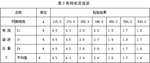 表3是接表2的網側各相電流的諧波含量表。