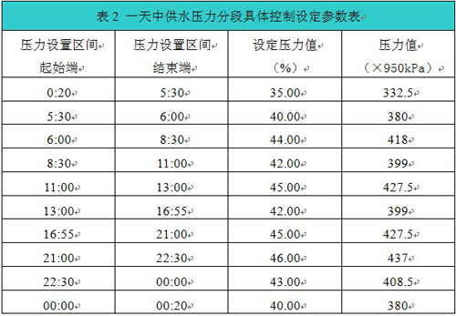 現場采用壓力閉環控制,每天分十個時間段來控制給定壓力,具體設定壓力分段如表2所示。
