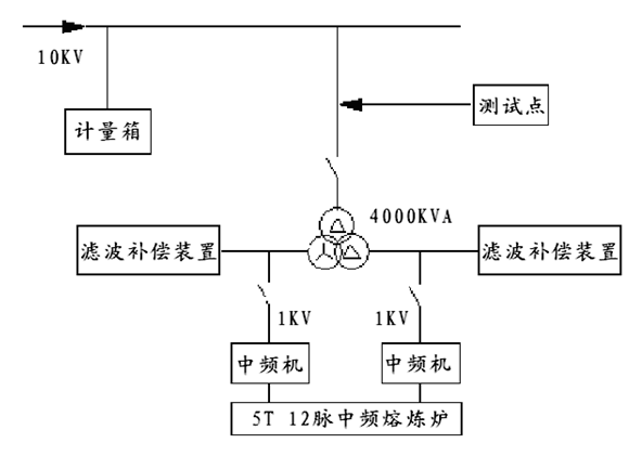 湖南某機械鑄造廠中頻熔煉爐現場配電系統一次圖,如圖1所示。