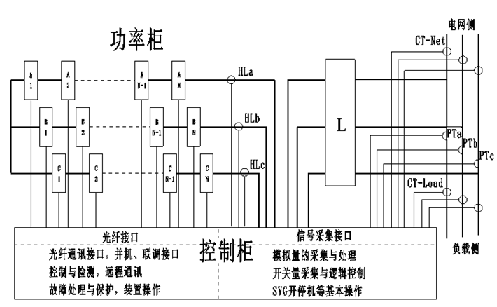 FGSVG系列產品采用進口電力電子模塊作為主功率器件,多個DSP和FPGA組成強大的控制系統。在控制算法上采用了先進的瞬時無功理論,實現了對系統/負載無功功率的快速準確的檢測。為了得到更快的響應速度和更高的性能采用了電流直接控制技術和載波移相技術,實現了并網無功電流的快速控制和更優的并網電流波形。FGSVG能夠快速連續地提供容性或者感性無功功率,實現適當的電壓和無功功率控制,保障電力系統穩定、優質地運行。
