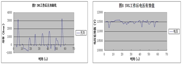 雖然選擇SVG容量小于原來的MCR,但是由于FGSVG響應速度快(低于5ms的響應時間)如圖5和圖6所示,不會出現短時無功過補現象,因此最終補償效果比較出色。