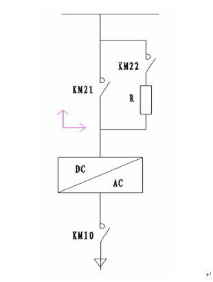 逆變裝置的一次主回路主要有直流接觸器、逆變單元、濾波電抗器、交流接觸器等部分組成。整機主回路圖如圖1所示。